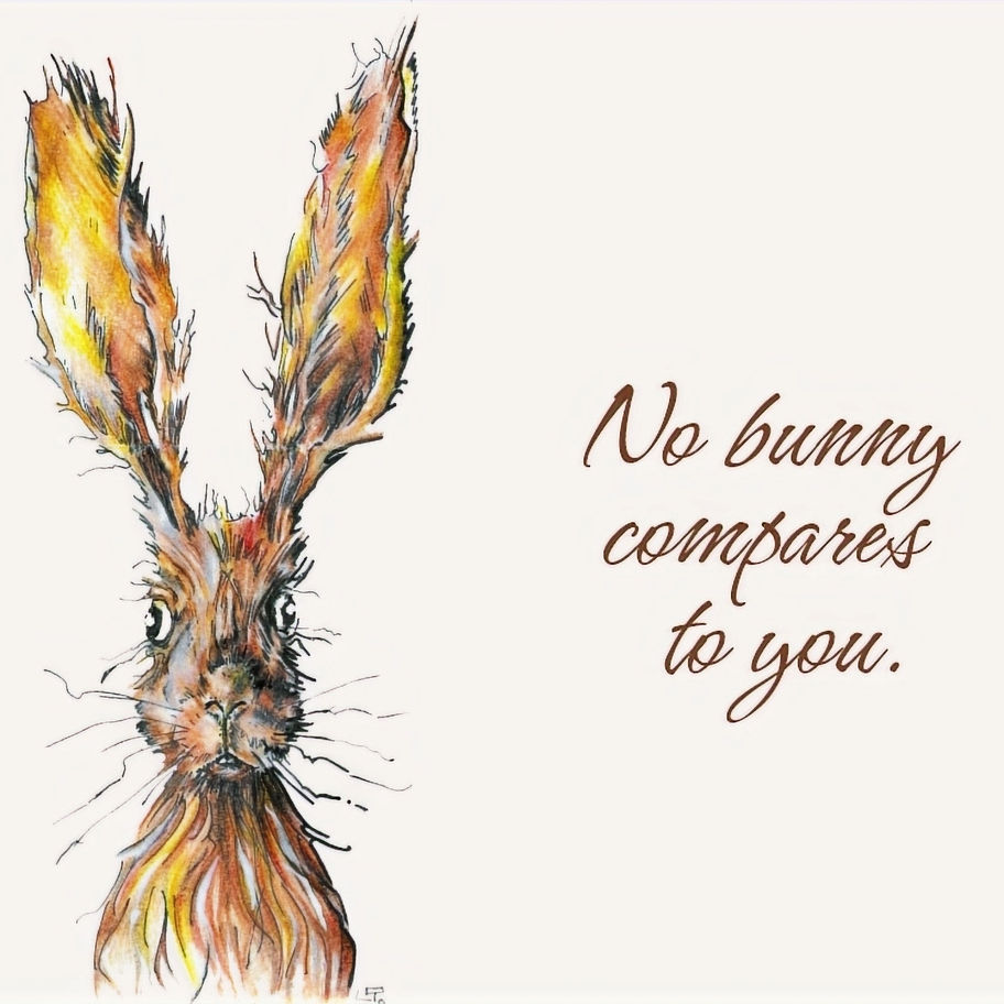 - No Bunny Compares to You, is an original Quirky Is Me design, professionally printed in the UK on premium 300gsm Tintoretto Gesso card and paired with a recycled kraft envelope.